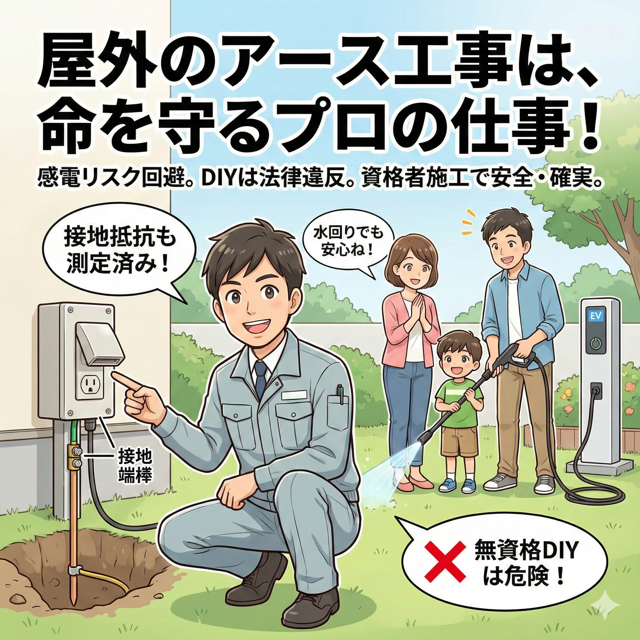 屋外コンセント増設工事屋外コンセントの「アースなし」はなぜ危険?DIYのリスクと安全な後付け工事ガイド