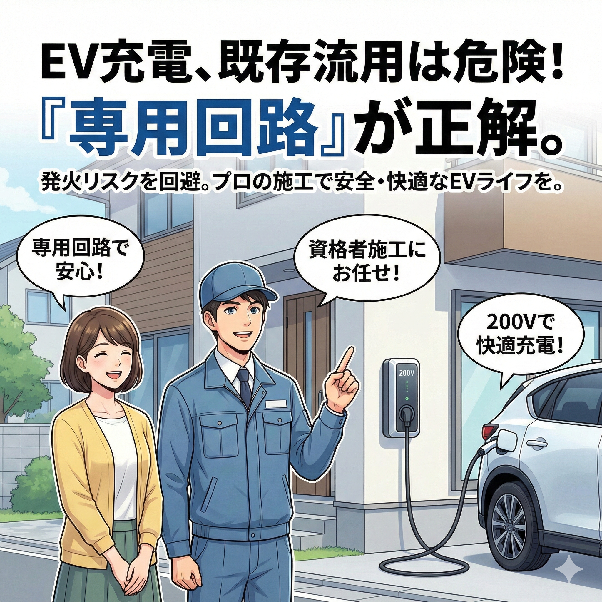 屋外コンセント増設工事屋外コンセントを200V化してEV充電!既存配線は使える?工事費用と流れを解説