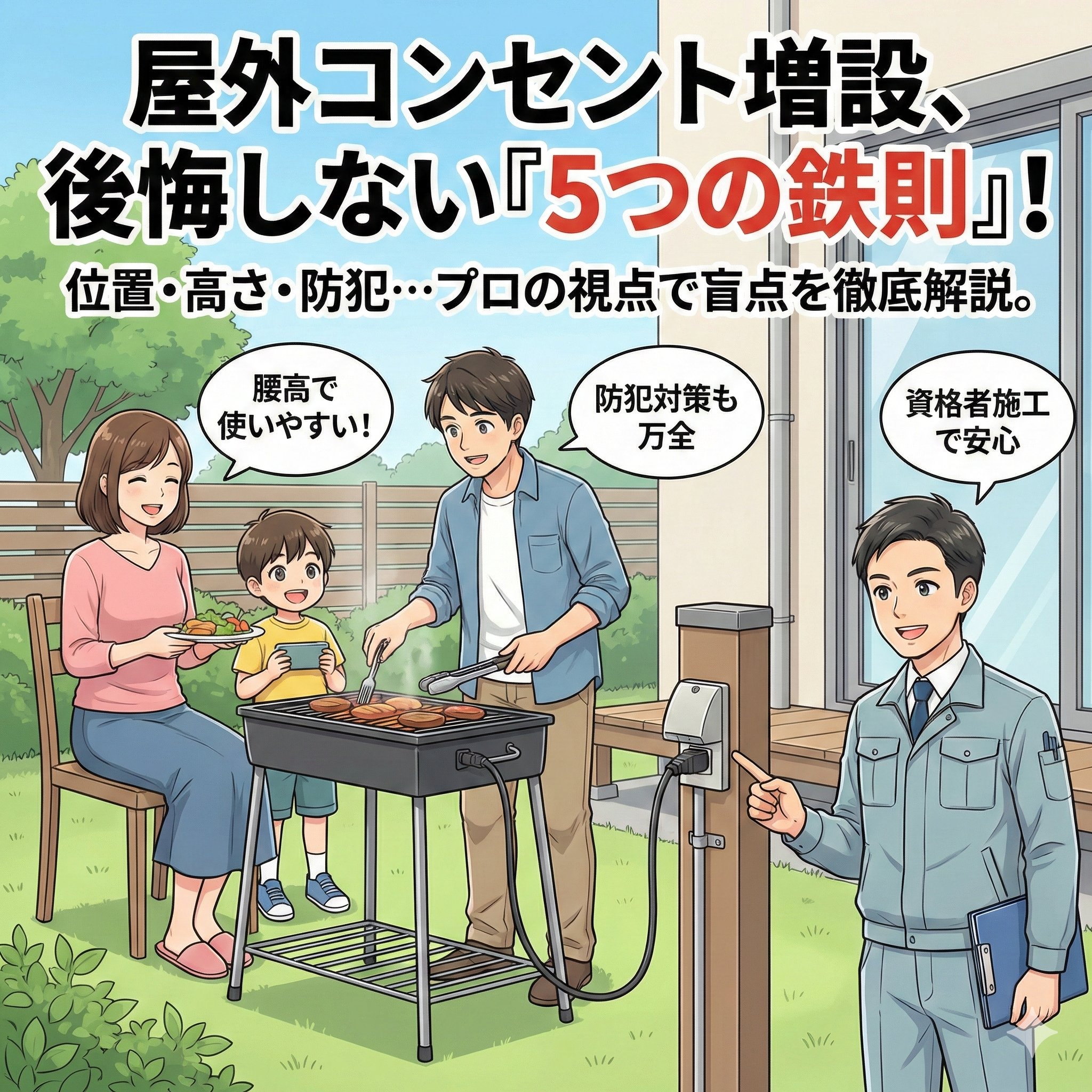 屋外コンセント増設工事屋外コンセント増設で後悔しない5つの鉄則!位置・高さ・防犯の盲点を徹底解説