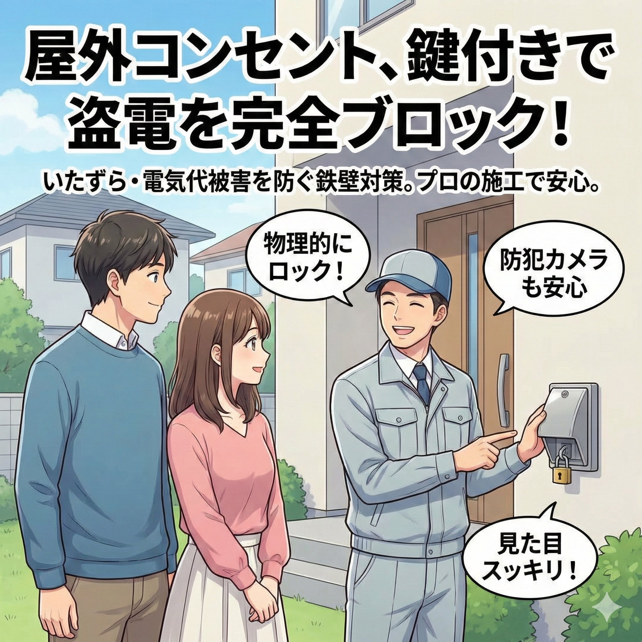 屋外コンセント増設工事屋外コンセントの盗電・いたずら防止ガイド|勝手に使わせない4つの鉄壁対策と費用