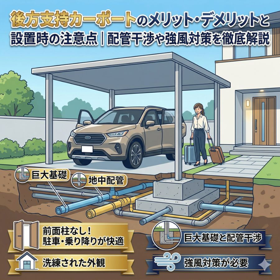 新築戸建てを購入し、いざカーポートを設置しようと考えたとき、「柱が邪魔で車のドアが開けにくくならないか」「将来車を買い替えたときに高さが足りなくなるのではないか」と悩む方は少なくありません。カーポートの柱の位置や高さは、 […]