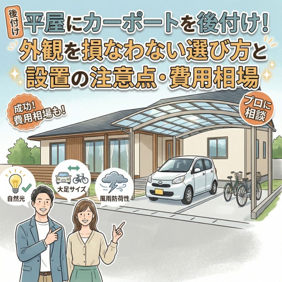 新築の平屋にカーポートを設置したいとお考えの皆様へ。平屋の美しい外観デザインを損なわず、リビングの採光を確保し、台風や積雪にも耐えられるカーポートを選ぶには、専門的な視点でのプランニングが欠かせません。結論から申し上げま […]