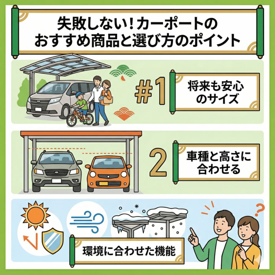 カーポート失敗しない!カーポートのおすすめ商品と選び方のポイント