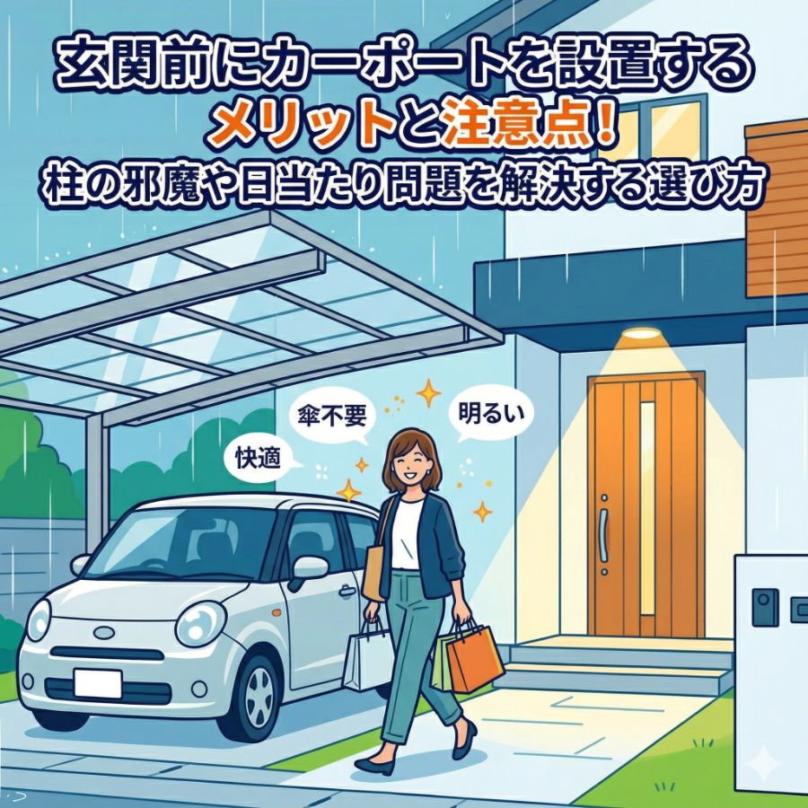 カーポート玄関前にカーポートを設置するメリットと注意点!柱の邪魔や日当たり問題を解決する選び方