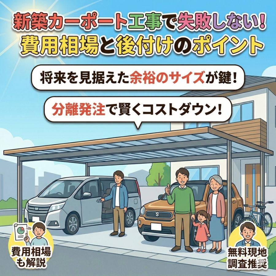 カーポート新築カーポート工事で失敗しない!費用相場と後付けのポイント