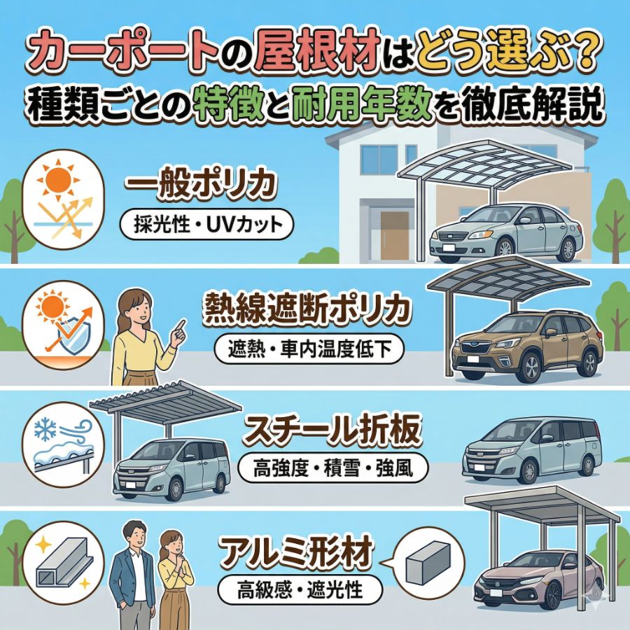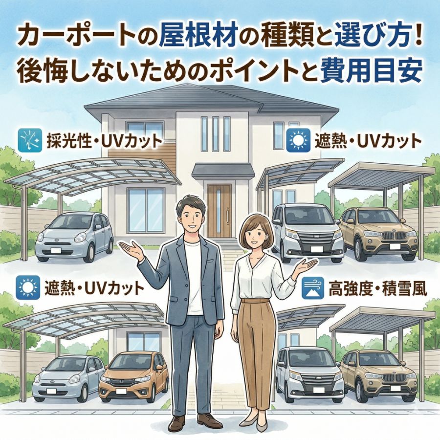 カーポートカーポートの屋根材の種類と選び方!後悔しないためのポイントと費用目安