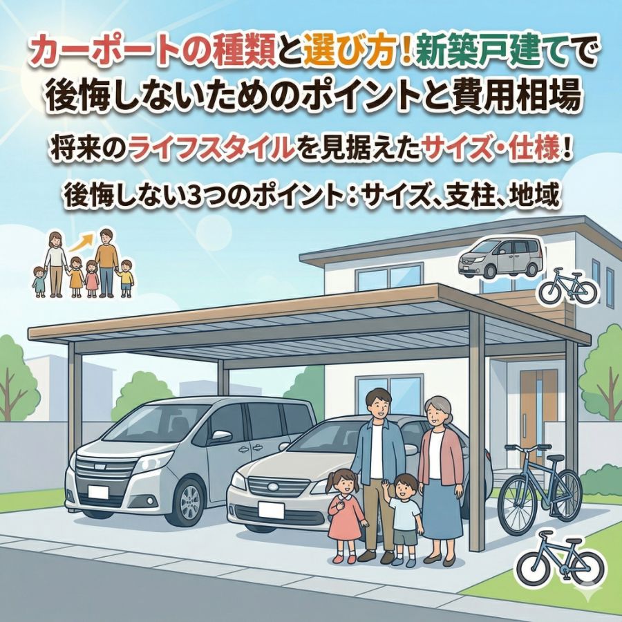 カーポートカーポートの種類と選び方!新築戸建てで後悔しないためのポイントと費用相場