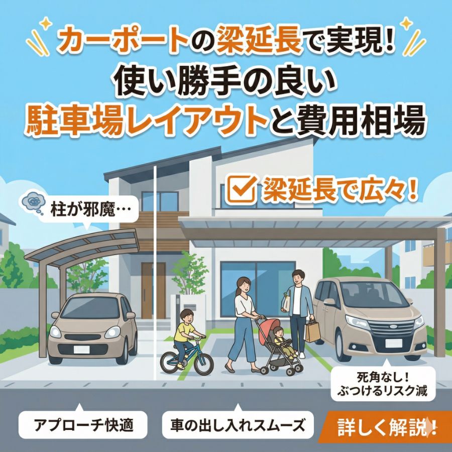 カーポートカーポートの梁延長で実現!使い勝手の良い駐車場レイアウトと費用相場
