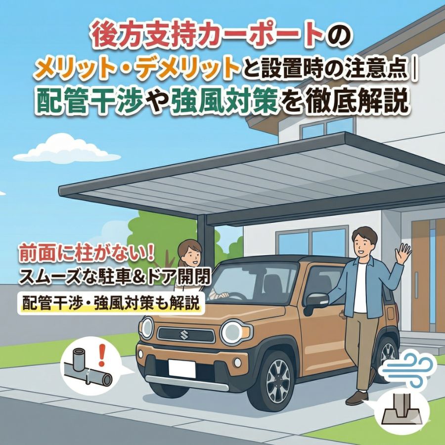 カーポート後方支持カーポートのメリット・デメリットと設置時の注意点|配管干渉や強風対策を徹底解説
