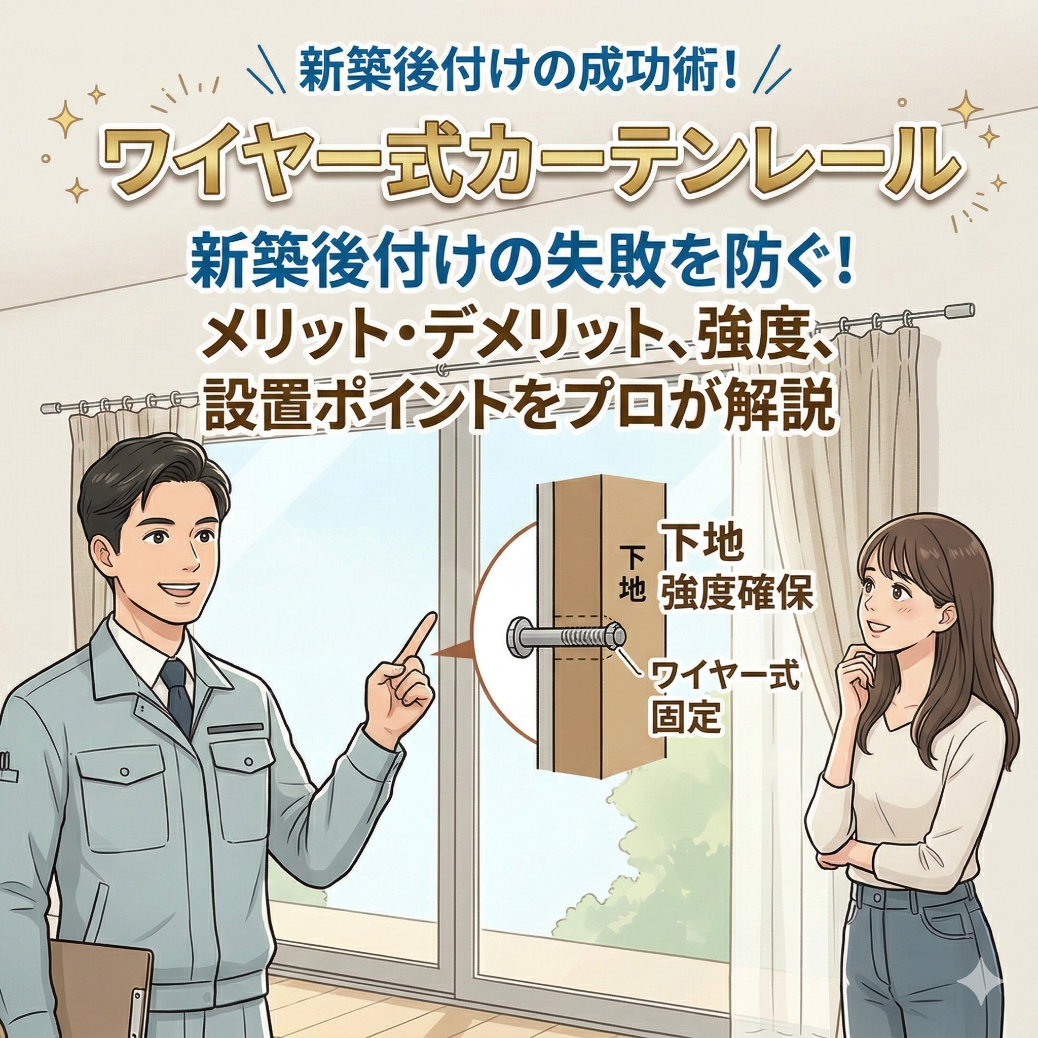 カーテンレール(機能性)カーテンレール(装飾)ワイヤー式カーテンレールのメリット・デメリット|新築への後付けで失敗しないための強度と設置のポイント