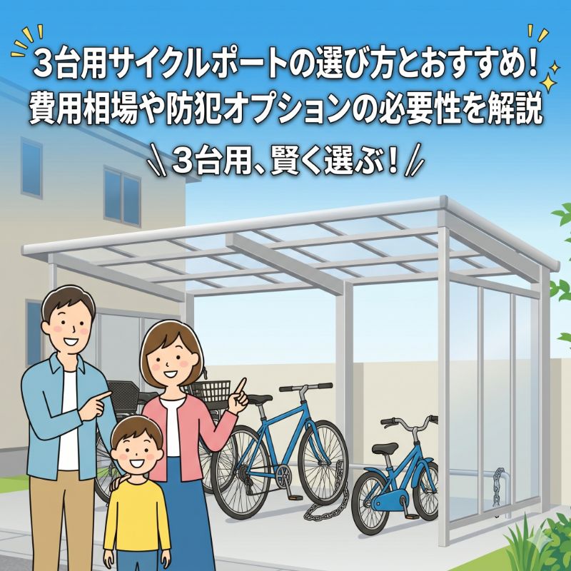 サイクルポート3台用サイクルポートの選び方とおすすめ!費用相場や防犯オプションの必要性を解説