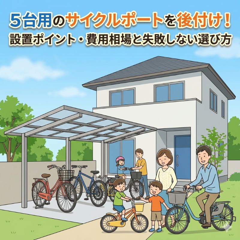 サイクルポート5台用のサイクルポートを後付け!設置ポイント・費用相場と失敗しない選び方