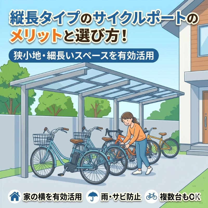 サイクルポート縦長タイプのサイクルポートのメリットと選び方!狭小地・細長いスペースを有効活用
