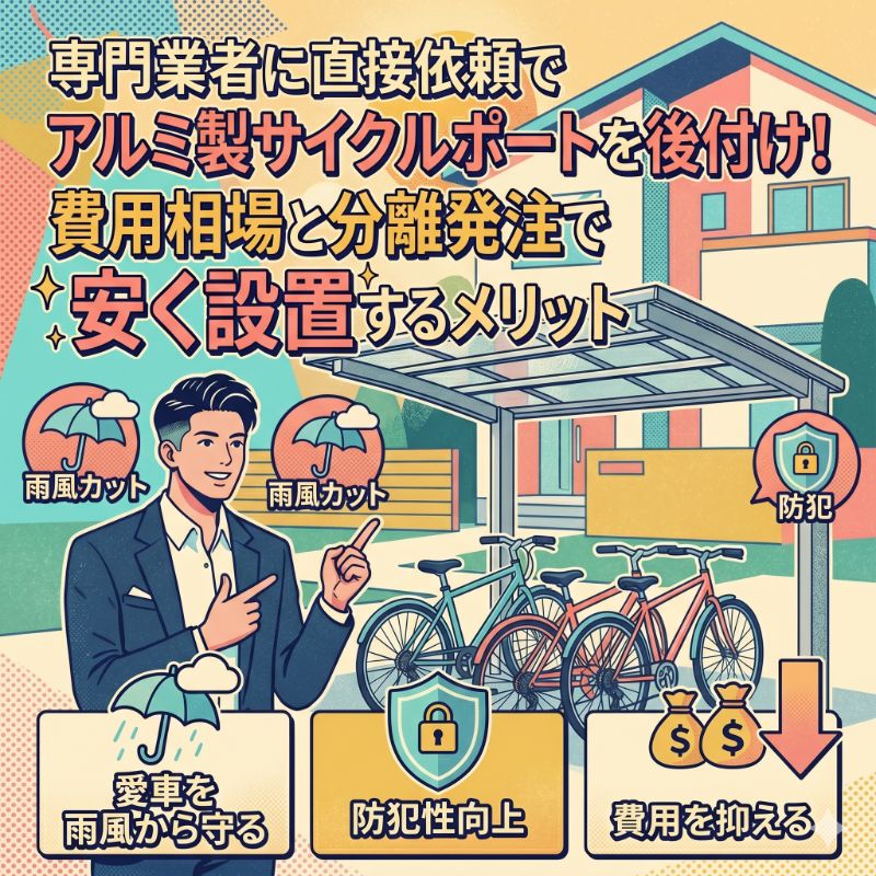 サイクルポートアルミ製サイクルポートを後付け!費用相場と分離発注で安く設置するメリット