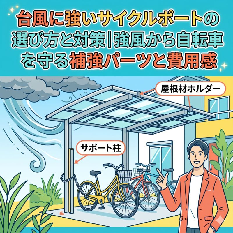 サイクルポート台風に強いサイクルポートの選び方と対策|強風から自転車を守る補強パーツと費用感