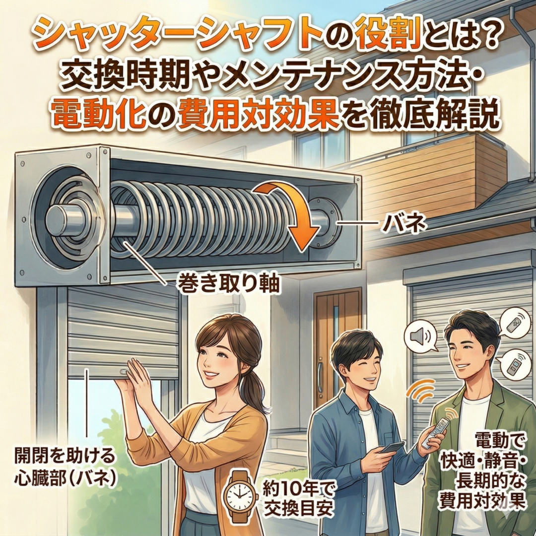 シャッターシャッターシャフトの役割とは?交換時期やメンテナンス方法・電動化の費用対効果を徹底解説