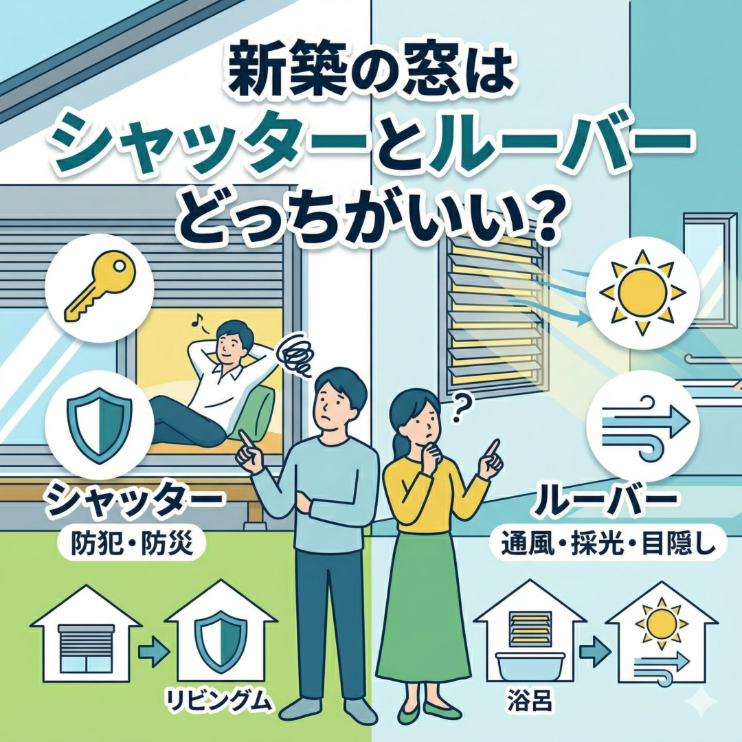 新築戸建ての窓まわりのオプション選びで、「シャッター」と「ルーバー(可動ルーバー面格子など)」のどちらを採用すべきか悩む方は少なくありません。防犯性や台風対策、日々の換気やプライバシーの確保など、それぞれに異なる強みがあ […]