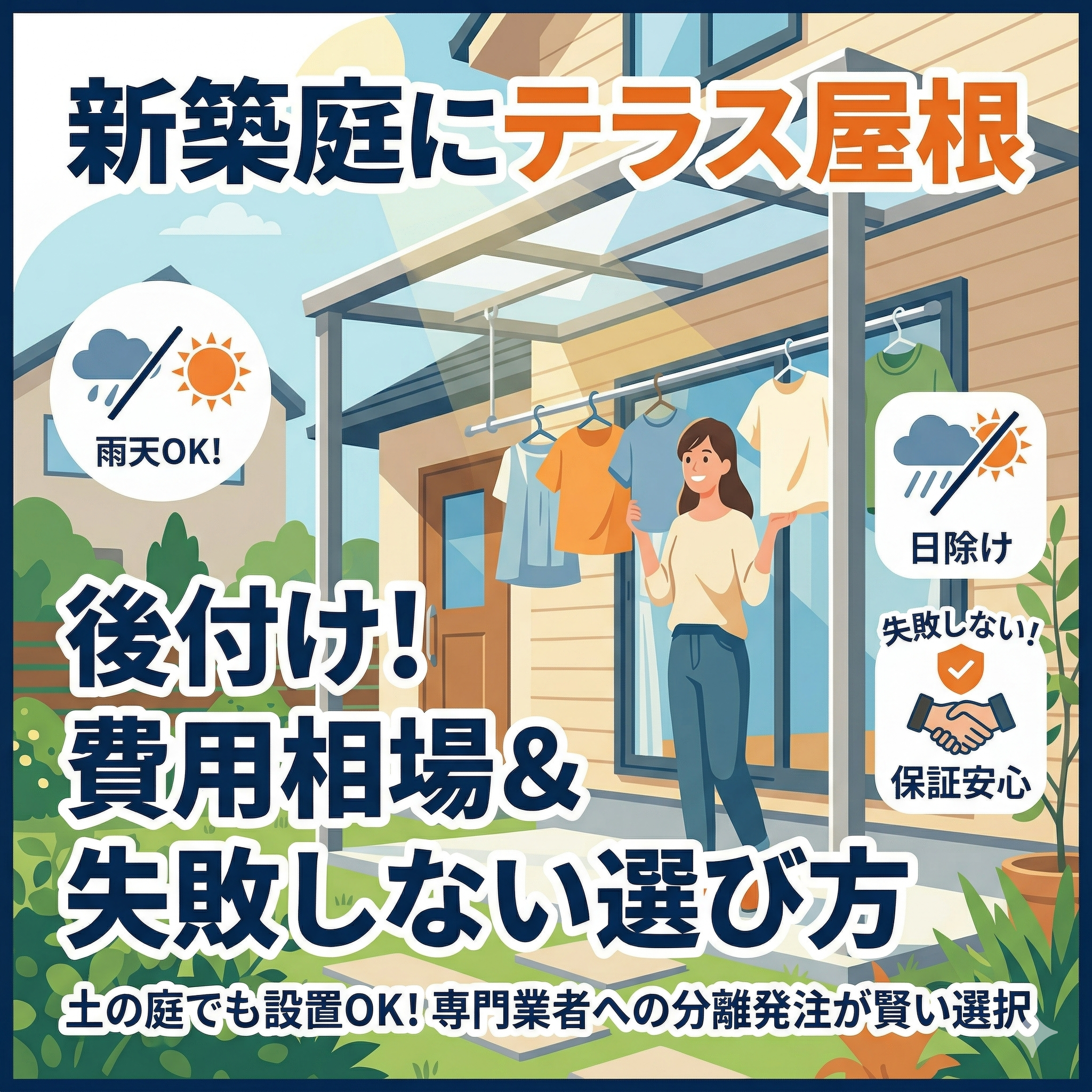 新築戸建てに大型のテラス屋根を後付けする際、ハウスメーカーの見積もりが数十万円と高額になり、悩んでいませんか?結論から言うと、オプション工事専門業者へ「分離発注」することで、品質を保ちながら費用を大幅に抑えることが可能で […]