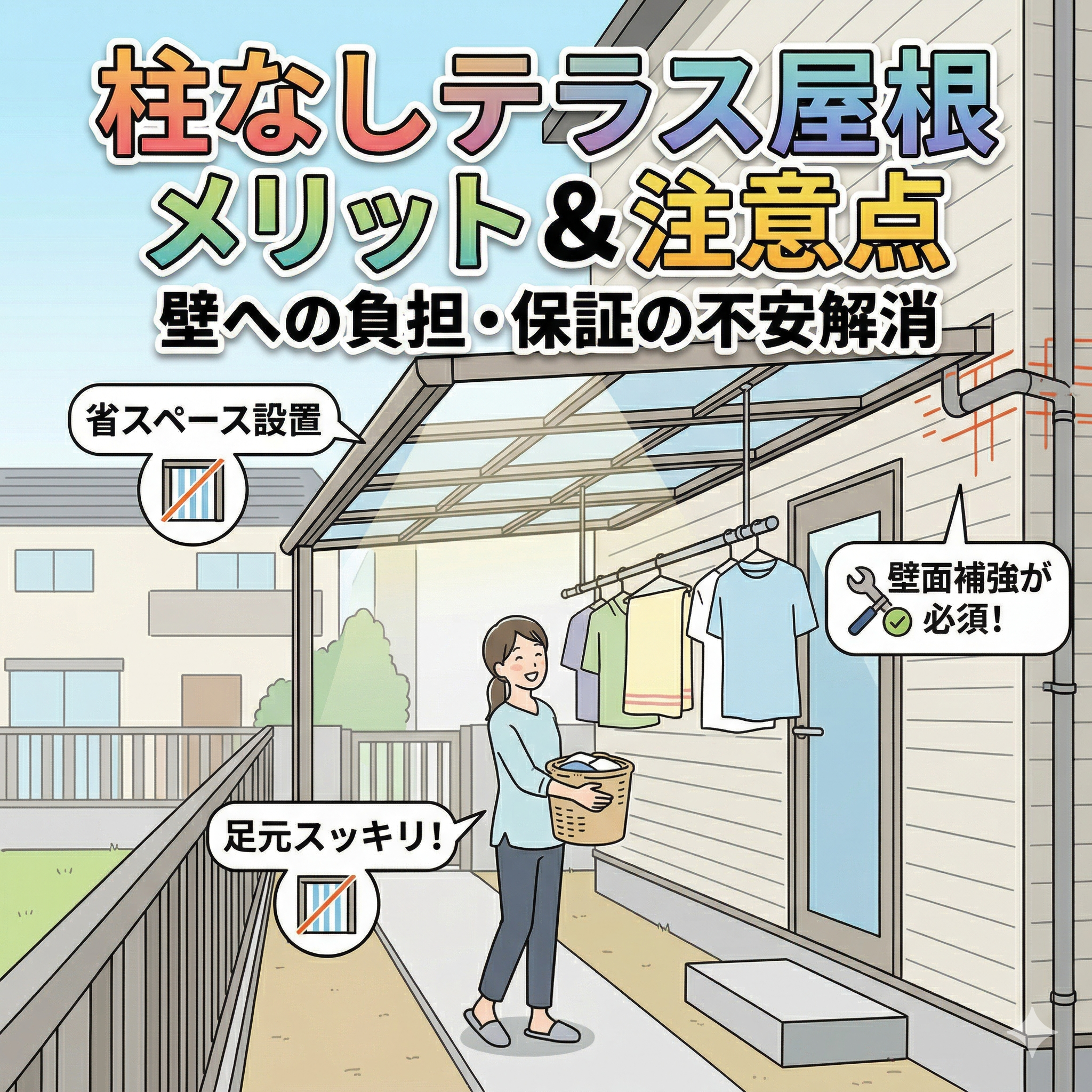 テラス屋根テラス屋根の「柱なし」タイプを選ぶメリットと注意点は?壁への負担や保証の不安を解消