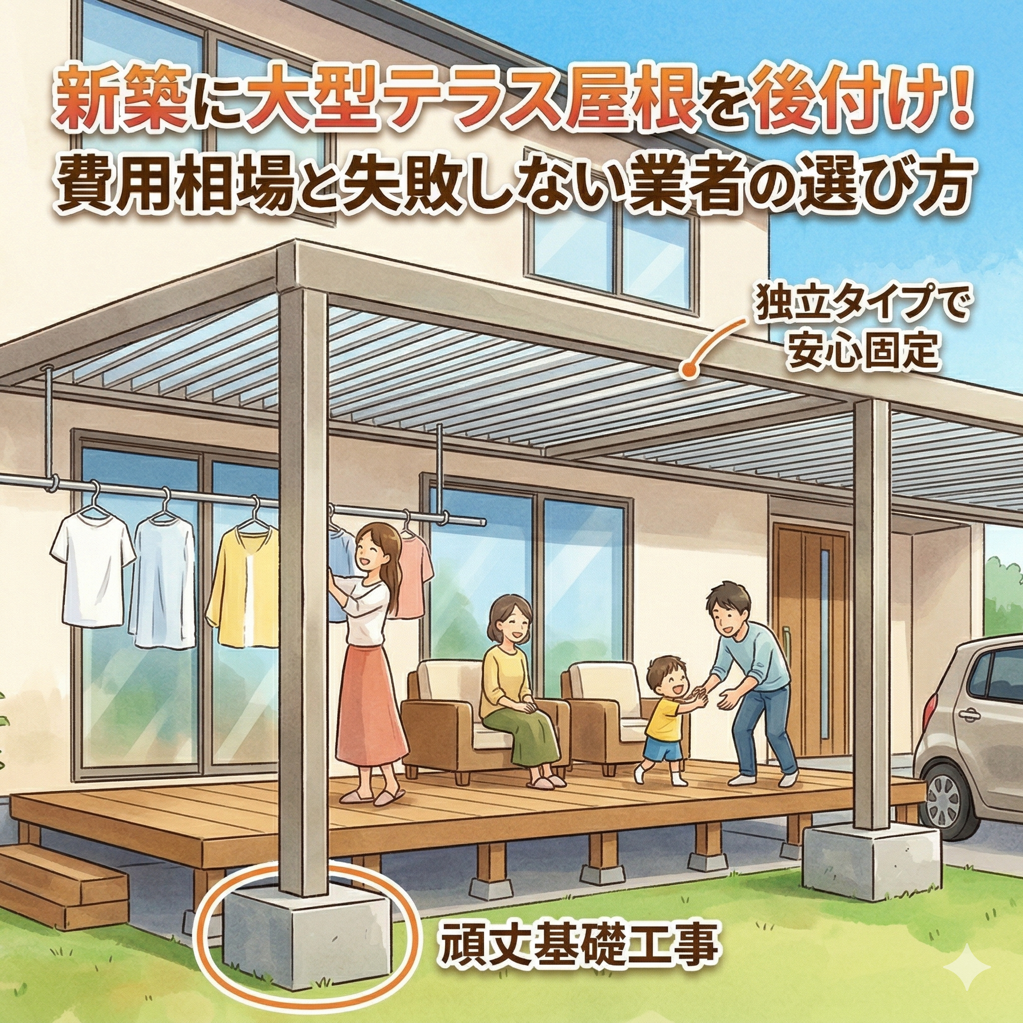 テラス屋根新築に大型テラス屋根を後付け!費用相場と失敗しない業者の選び方
