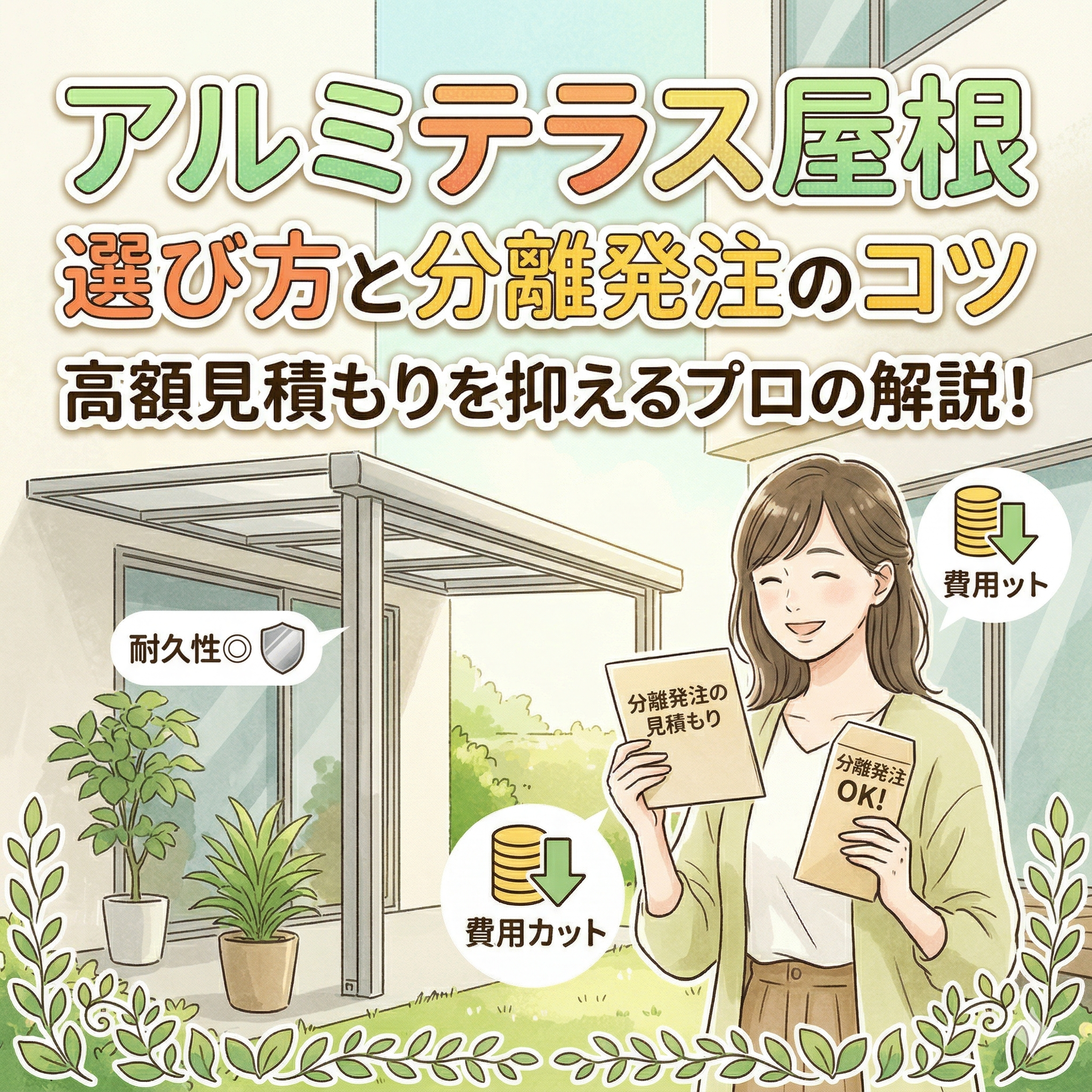 テラス屋根テラス屋根(アルミ)の選び方とおすすめは?高額な見積もりを抑える分離発注のコツ