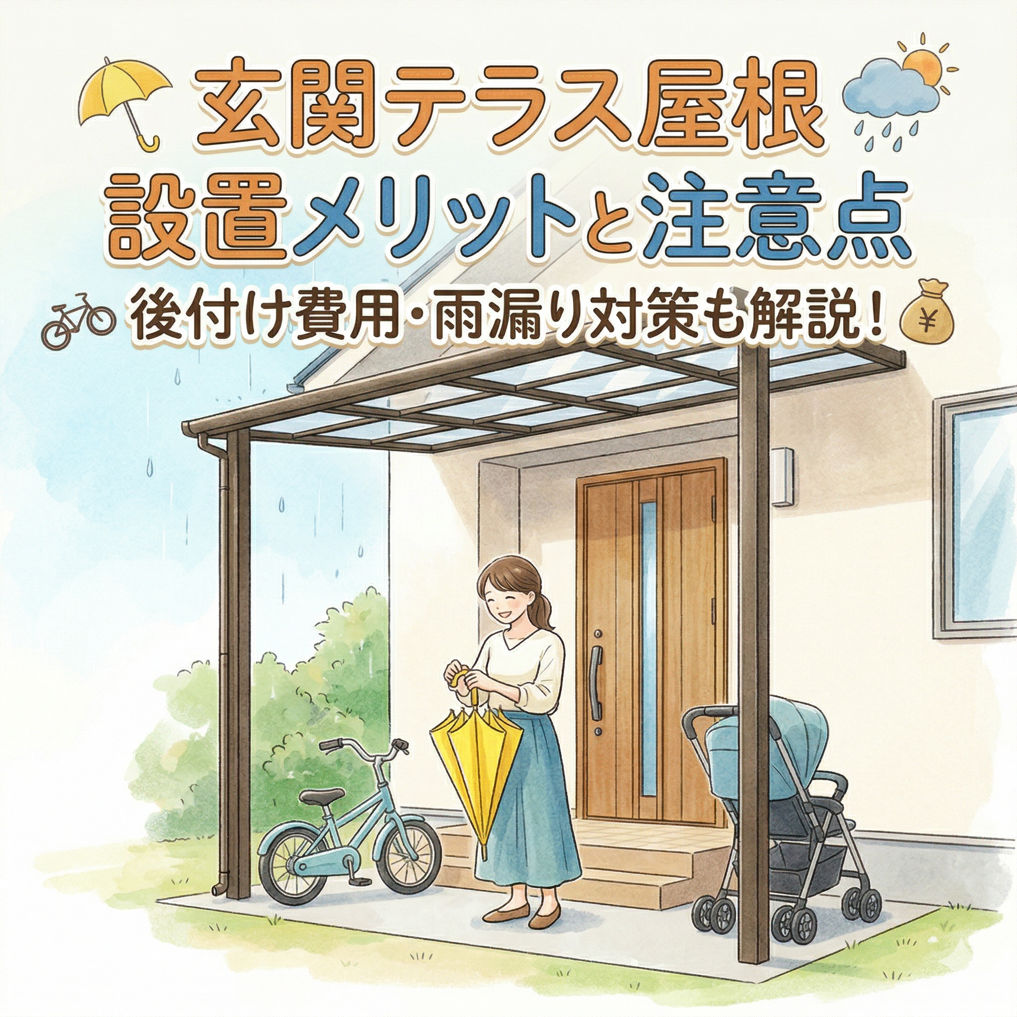 テラス屋根玄関へのテラス屋根設置メリットと注意点|後付けの費用と雨漏り対策